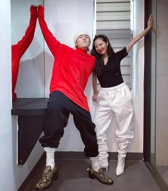 让我欣慰的是,泫雅和男友金晓钟一起出街,黑色卫衣搭配豹纹裤,虽然换了可爱的发型,不过在穿搭方面,她还是一贯的“泫雅风”没变。