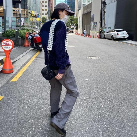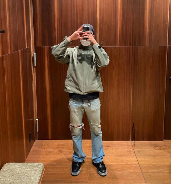 想要在照片中不露脸,除了刻意涂抹脸部和拍照时取景脖子以下部分,另一种最直接的方法就是拍照背影照了,还能够完整展示全身从帽子、衣服到球鞋的穿搭。