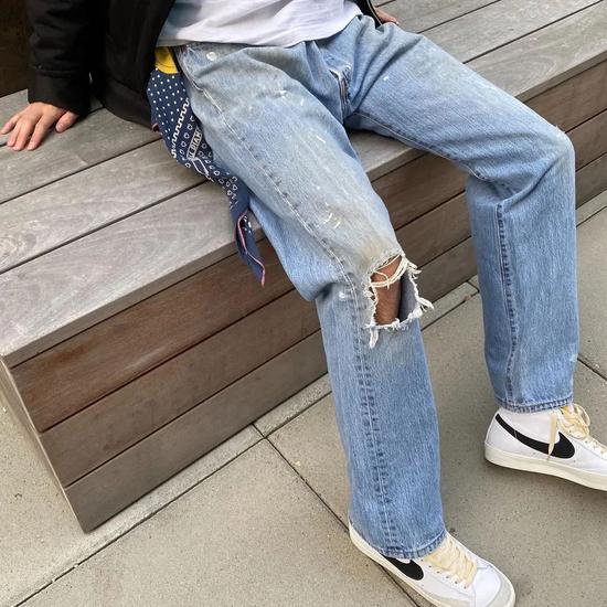 第二个直男拍照戏码比女生还多的点在于,双脚微内八。先不要一脸问号,这真的不是让自己看起来女性化一些,但从好几个博主的照片中都能看到类似的姿势。我猜是为了凸显球鞋,还有不要站得直直的那么呆板。