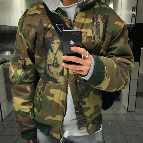 众所周知Vibe 风格穿搭中Archive 外套是十分重要的一环,而且其中不少是工装、MA-1或者棒球夹克,背面都带有刺绣或者缝制的图案,背影照可以充分展示这些细节。