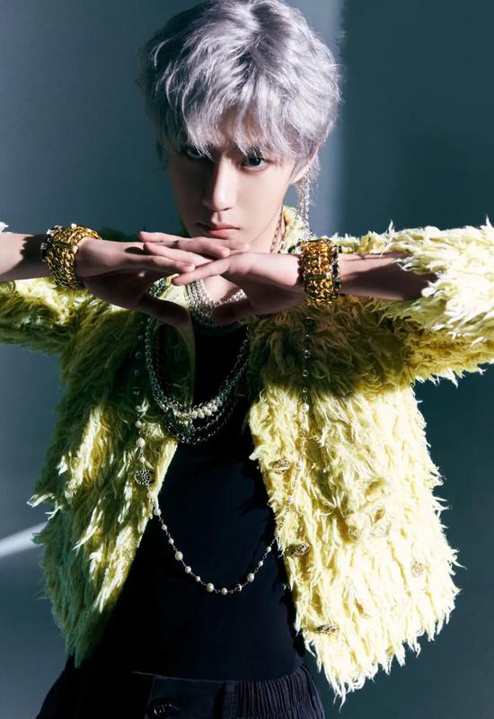 男生穿搭上羽毛元素一样个性不羁,比如王一博以黄色长羽毛短外套搭配浅灰色头发,酷感十足,这就是“撕漫男”本人吧!