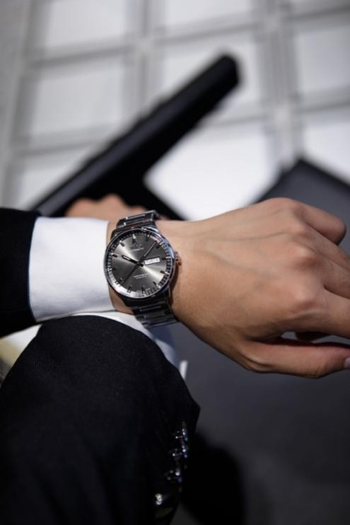 指挥官系列灵感源于建筑20周年限量腕表,致敬巴黎埃菲尔铁塔,限量发行1889枚,烟煤灰色的表盘落于男人的腕间,释放出如同埃菲尔铁塔般刚毅与坚定的强大气场;12点钟的刻度采用埃菲尔铁塔形状,所有整点刻度以黑白灰三色营造出铁塔结构视觉效果,整体呈现硬朗干练、坚不可摧的力量感,轻松成就都市硬汉形象。