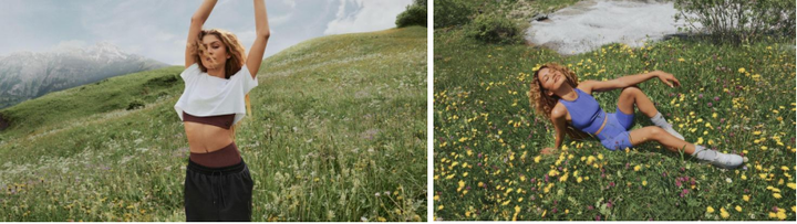 图2 & 图3:赞达亚身着2024 秋冬Movement产品线新品于瑞士阿尔卑斯山脉